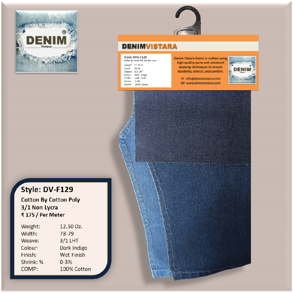 Denim Vistara presents high-quality 3/1 Right-Hand Twill (RHT) Denim Fabric made from 100% pure cotton, weighing 12.5 oz. This fabric is designed for durability, comfort, and classic denim appeal—perfect for crafting jeans, jackets, workwear, and casual clothing.