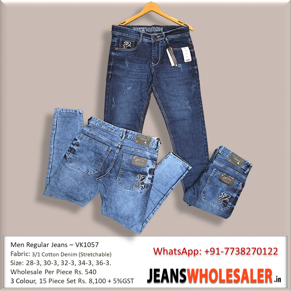 Men Regular Fit Jeans available in 1 set of 15 pieces, featuring 3 stylish colours. Durable fabric, perfect fit, and ideal for wholesale purchasing. Suitable for all-day comfort and everyday wear.